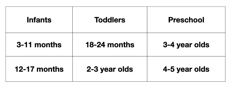 Ages Served 3 months - 5 years old (includes Pre-K3 and Pre-K4)